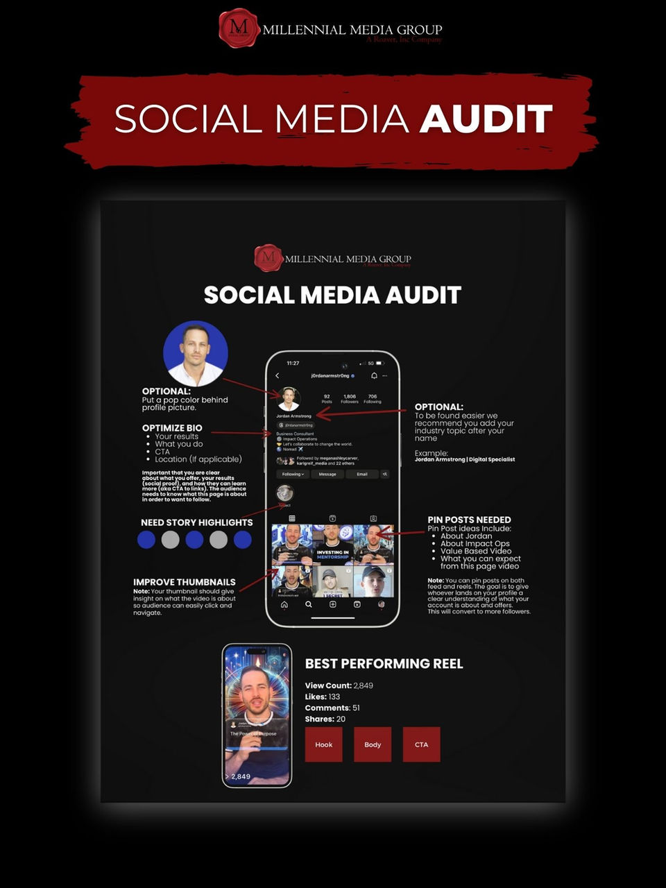 He is a master at locating bottlenecks for each client and providing them with a framework that will lead them to success on social media.